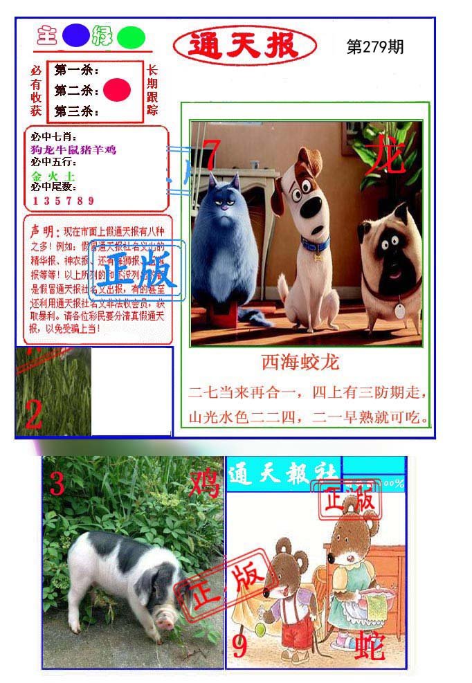 279期: ⑥肖 | 马龙蛇羊鼠猴 | 狗32中 |