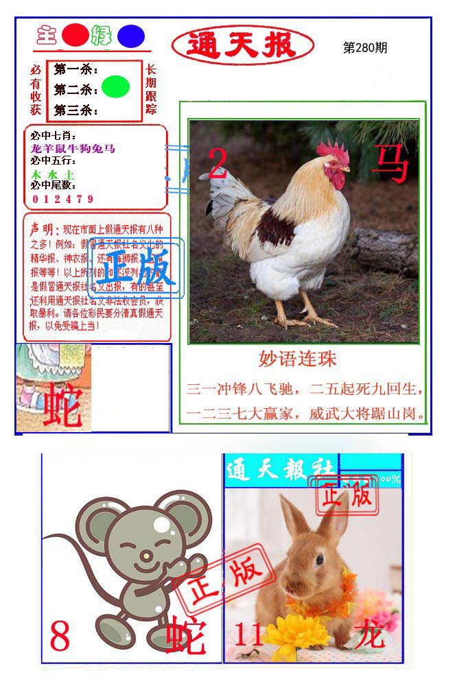 280期: ⑤肖 | 兔虎鸡牛蛇 | 虎16中 |