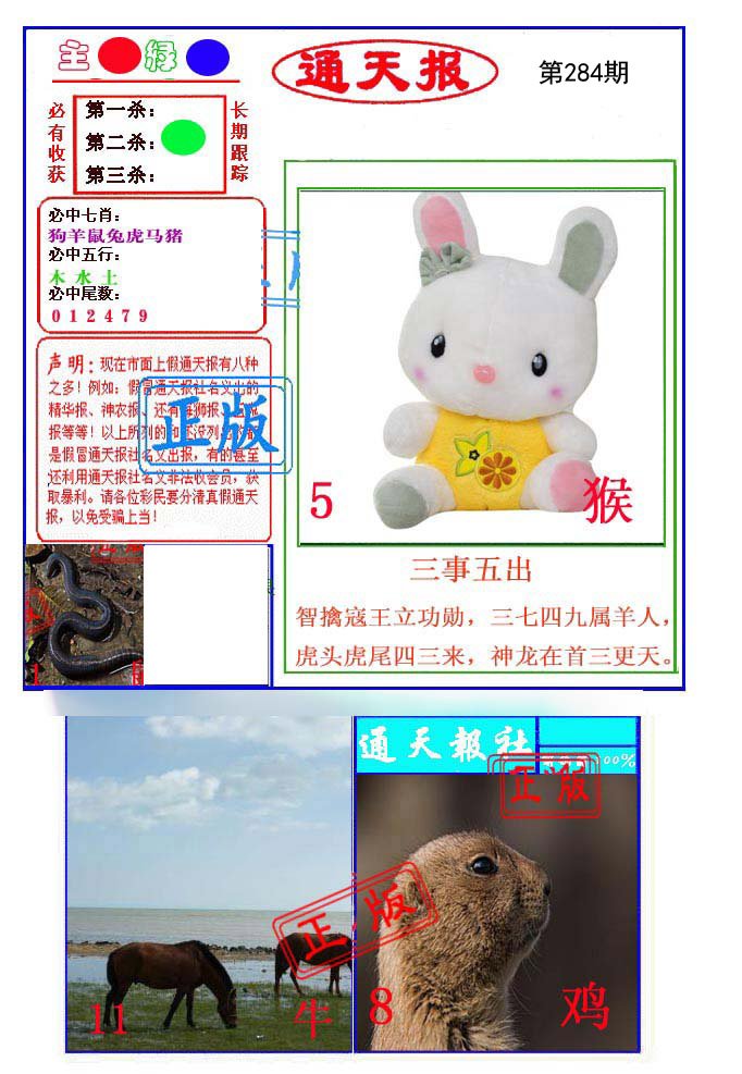 283期: ⑧肖 | 猴马鸡鼠蛇猪羊牛 | 鼠06中 |
