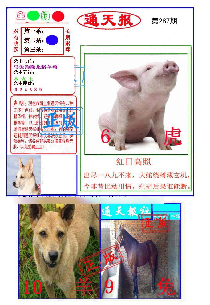 287期: ⑤肖 | 牛兔马虎猪 | ????中 |