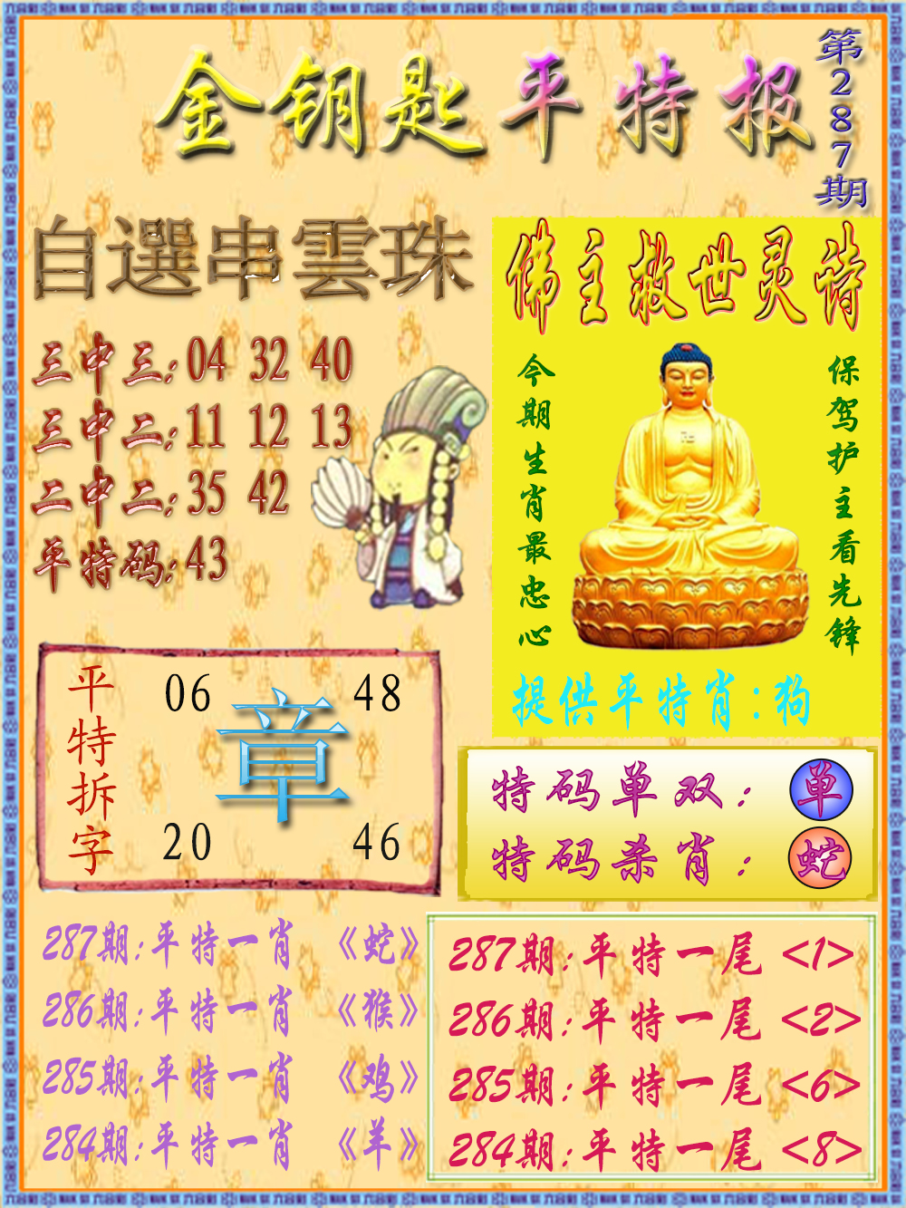 284期: ④肖 | 兔狗羊马 | 狗20中 |